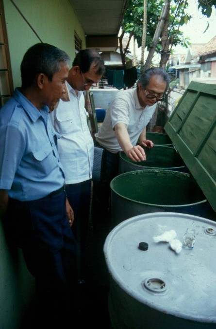 In den 1990er nahmen die Probleme mit Dengue und DHF in Jakarta zu. Die Dengue-Viren werden von dem Hauptvektor Aedes aegypti übertragen, der vor allem in künstlichen Wasseransammlungen wie Fässern mit Brauchwasser brütet. Der Gouverneur von Jakarta Wiyogo Atmodarminto bat die GFS stellvertretend für die „Kommunale Aktionsgemeinschaft zur Bekämpfung der Schnakenplage (KABS)“, die biologische Bekämpfung der Vektormücken in Java, Indonesien, zu ermöglichen. Bisher wurde der Vektor durch Vernebeln von Malathion bekämpft, das auch toxisch für Menschen ist.